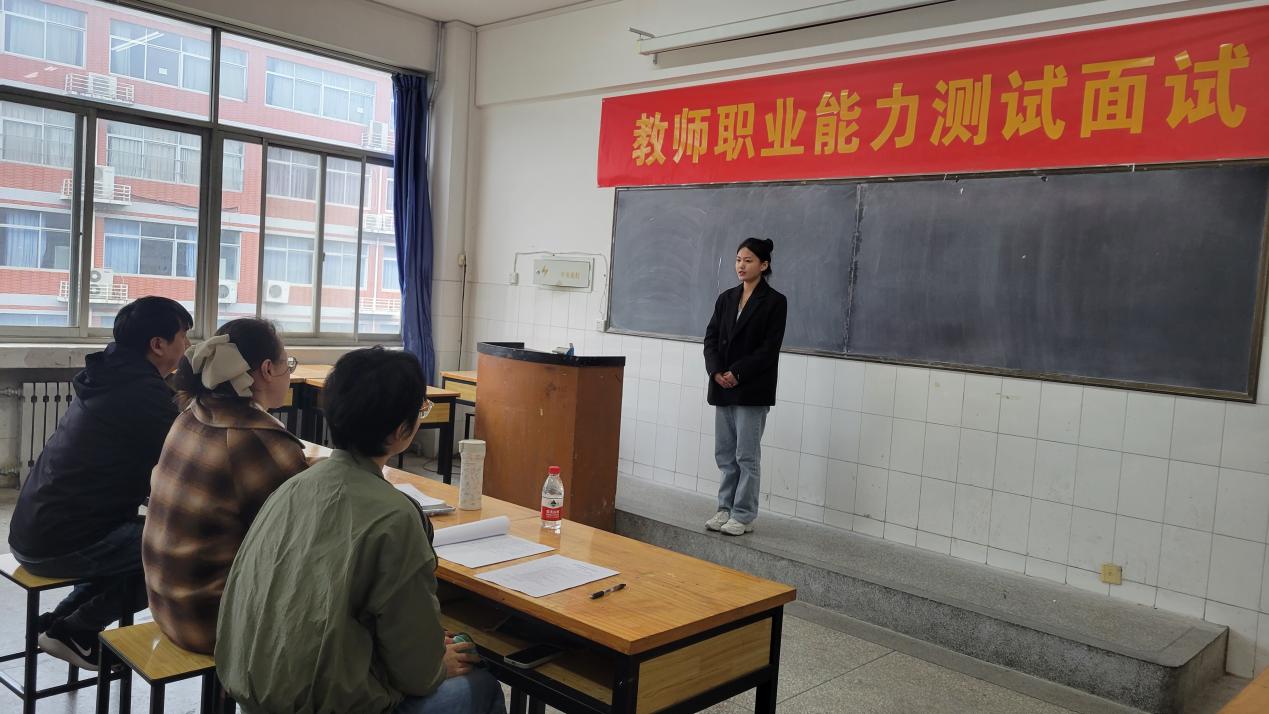 面试考场分为五个小组同时进行,每组各有三位评委老师。评委们秉承着公正、专业、严谨的态度,全面检测了考生的理论知识与技能、教育教学实践、基本教育素质等方面的能力,并结合实际表现给予了考生客观公正的面试成绩。
