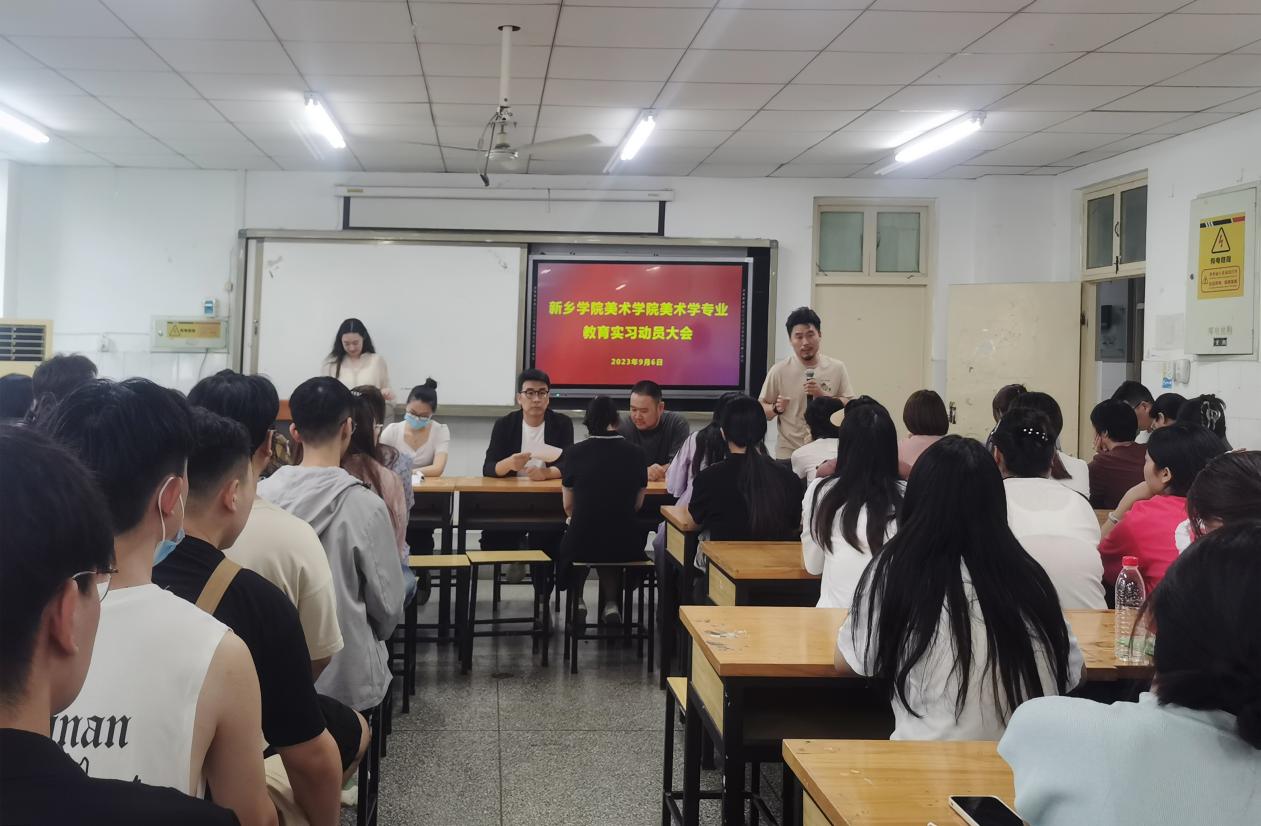 为促进2024届师范生教育实习工作的顺利开展,9月6日下午,在院系三楼308教室召开2024届美术学专业师范生教育实习动员大会。副院长单伟、毛璞,学工办主任沈政,郭长亮等指导教师代表及相关辅导员,2024届美术学专业全体学生参加会议。会议由教科研秘书郭颖主持。
