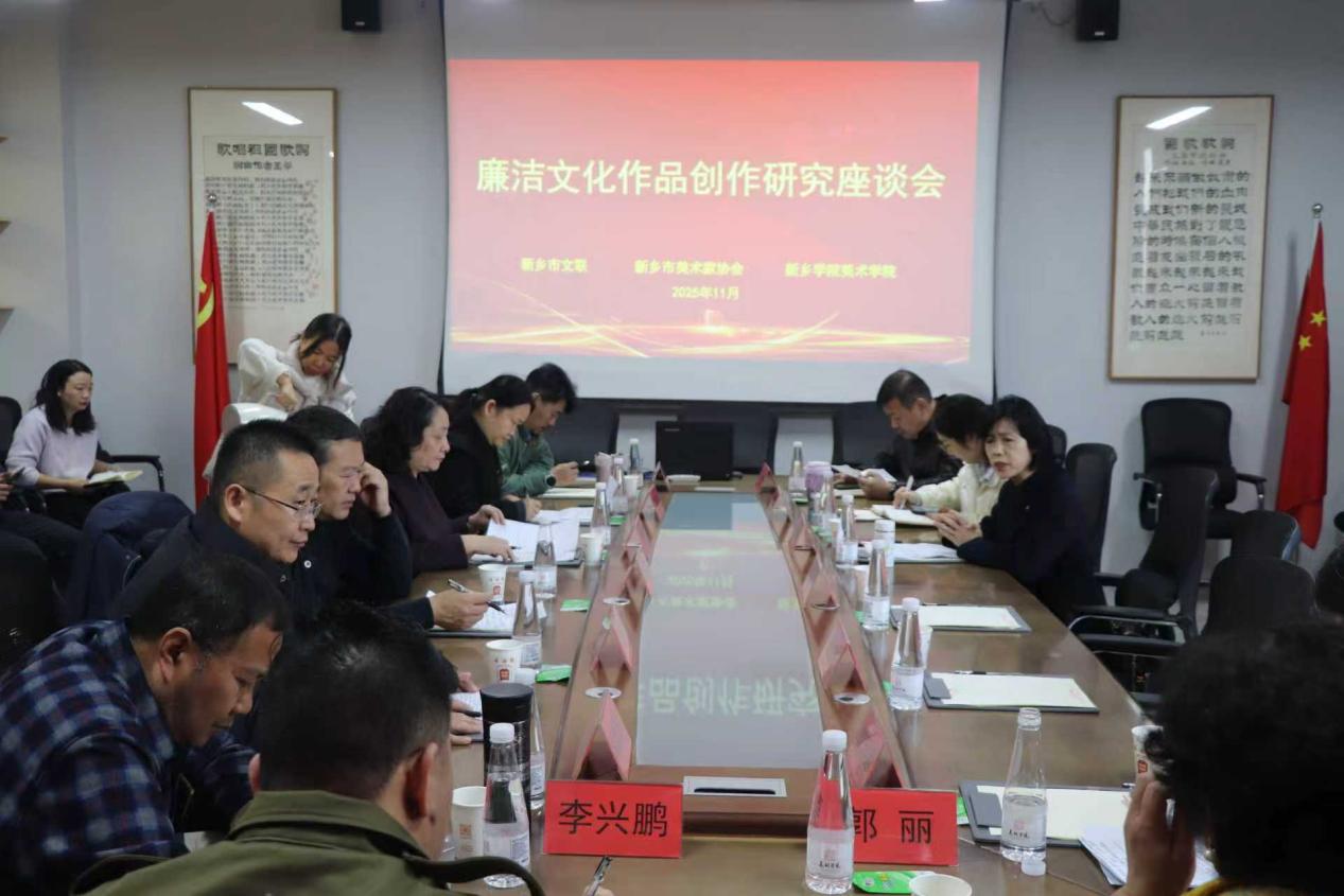 王茜强调了此次座谈会对于推动廉洁文化与美术创作深度融合、弘扬清风正气的重要意义。常明曌针对2026廉洁文化建设主题作品展的作品征集、创作方向、评审标准等具体要求进行了细致讲解。李晓雷代表新乡市美协,为2026廉洁文化建设主题美术作品创作明确了导向。随后,参会的美术家、师生代表与青年画家围绕展览主题,结合自身创作实践各抒己见,就廉洁文化如何通过绘画、雕塑等美术形式进行艺术表达、如何挖掘本土廉洁文化素材、如何创新创作手法等问题展开热烈讨论,现场交流氛围浓厚。