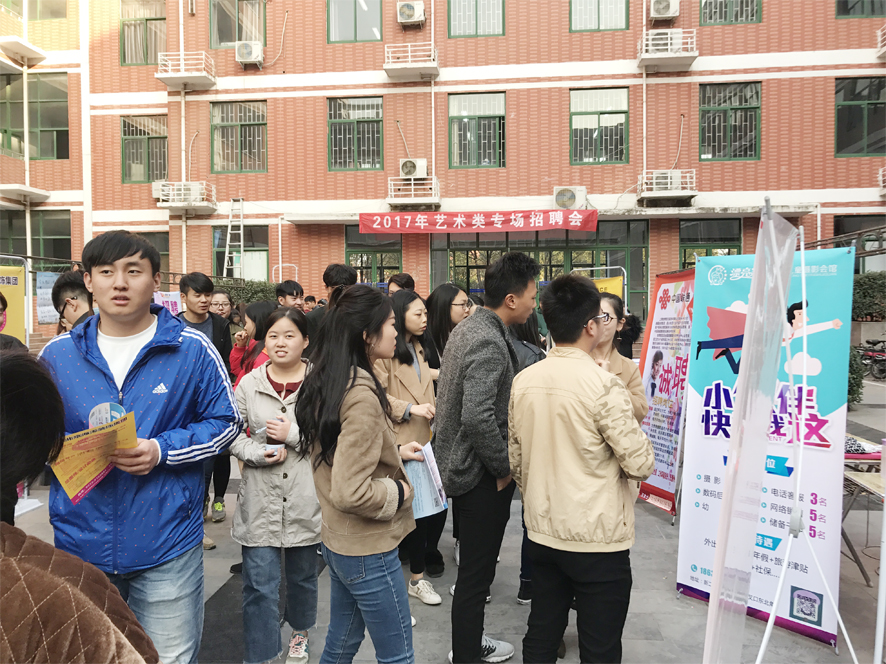 为更好地满足艺术学院2018届毕业生求职就业和企业招聘人才的需要,帮助就业困难和迷茫的学生提前就业,艺术学院于11月14日下午3:00在A-10与A-11号楼之间的广场举办了艺术类专场招聘会,本次招聘会得到大学生就业指导中心和艺术学院的高度重视。就业中心的领导和负责老师,艺术学院领导以及各辅导员到现场指导组织工作,并与用人单位和求职学生亲切交谈,深入了解招聘单位的人才需求和毕业生的求职意向。