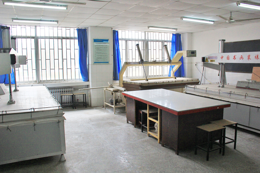 美术学综合工作室:主要承担装裱教学与实训任务。装裱实验室现有装裱专用案3台、装裱机、切裱机、切角机等设备。