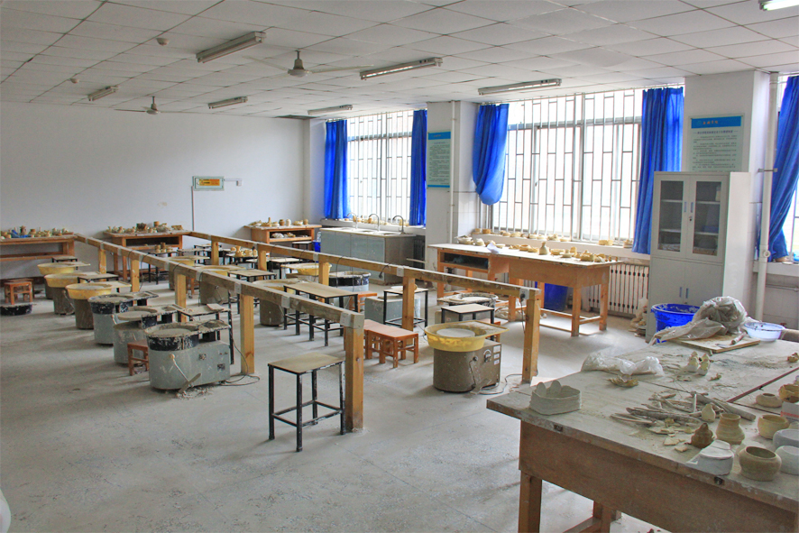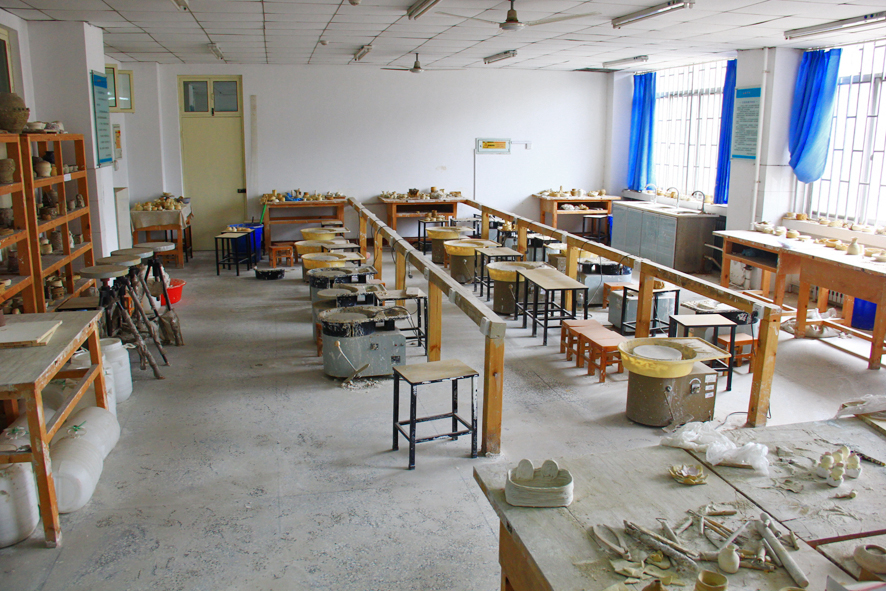 陶艺工作室:现有练泥机、陶瓷拉环机、自动电窑、车模机、吹釉间、泥板机、泥条机、拉坯机等设备。该工作室主要承担《陶艺基础》《陶艺实习》等多门课程的教学与实训任务。