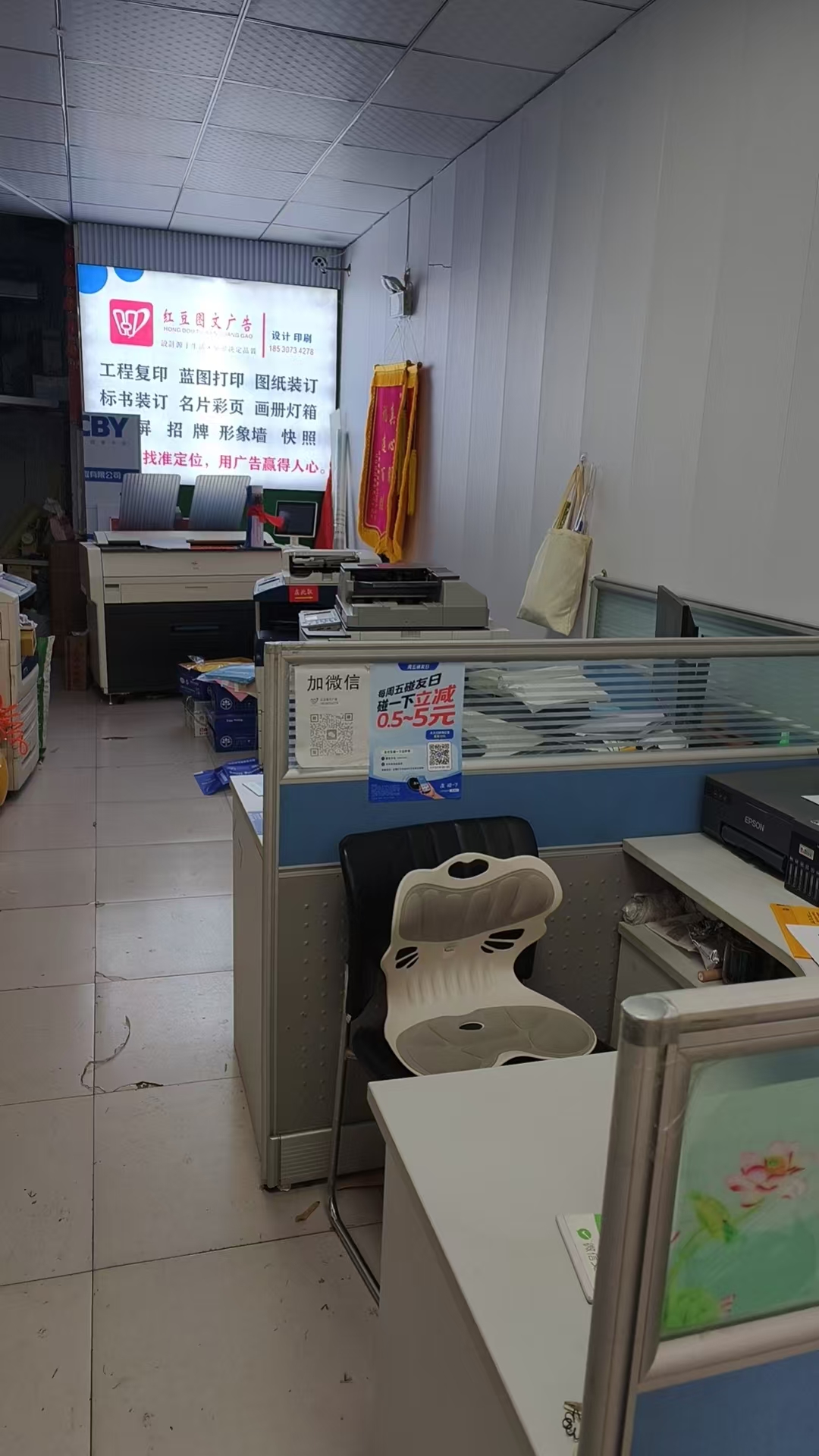 在红豆图文广告公司负责人的带领下,教研室教师团队实地参观了从传统的喷绘写真、图文快印,到数字化品牌视觉设计、新媒体广告运营,红豆图文广告展示了其"传统+数字"双轮驱动的业务布局。