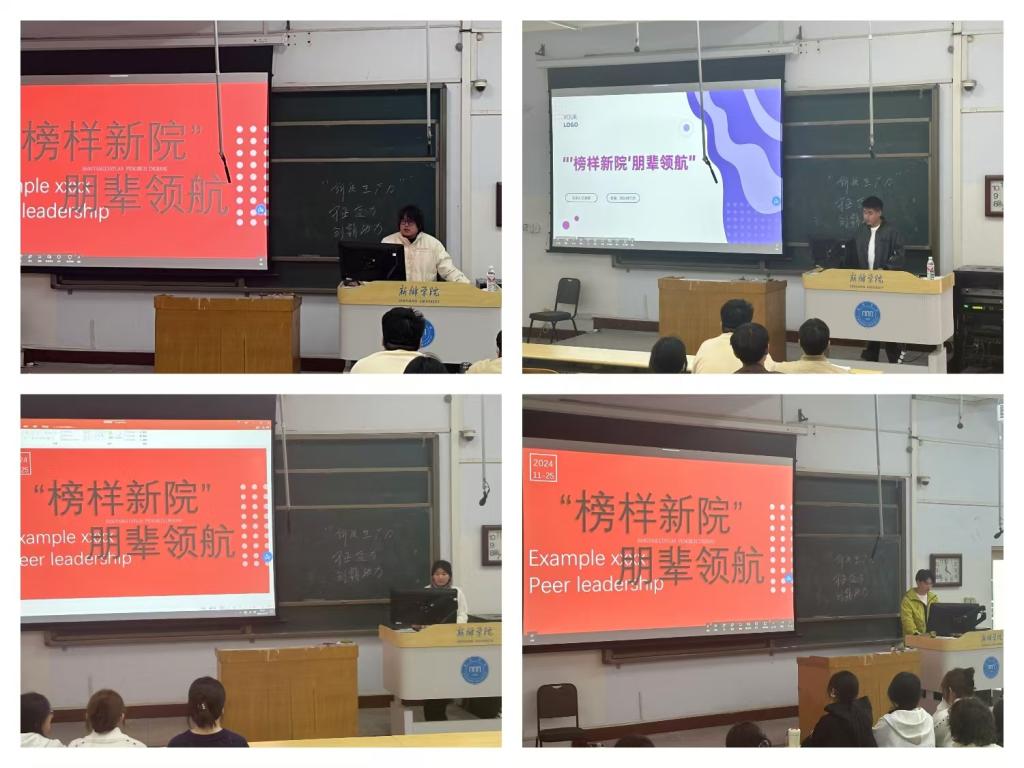 为深入贯彻落实学校学风建设的重要部署,充分发挥朋辈榜样的示范与引领作用,在校园内营造积极进取、奋发图强的浓厚学习氛围,11月25日下午,学院于A11-119举办“榜样新院朋辈领航”主题分享活动。此次活动由学工办助理郑宁波主持,来自不同年级60余名学生参与活动。